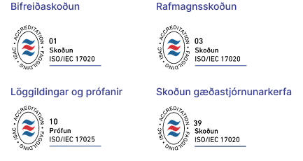 Eftirfarandi starfssvið Frumherja eru faggilt af faggildingarsviði Hugverkastofu (ISAC)